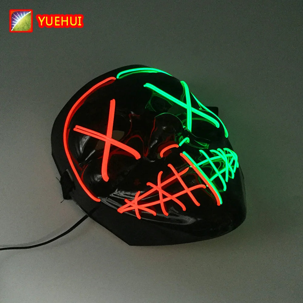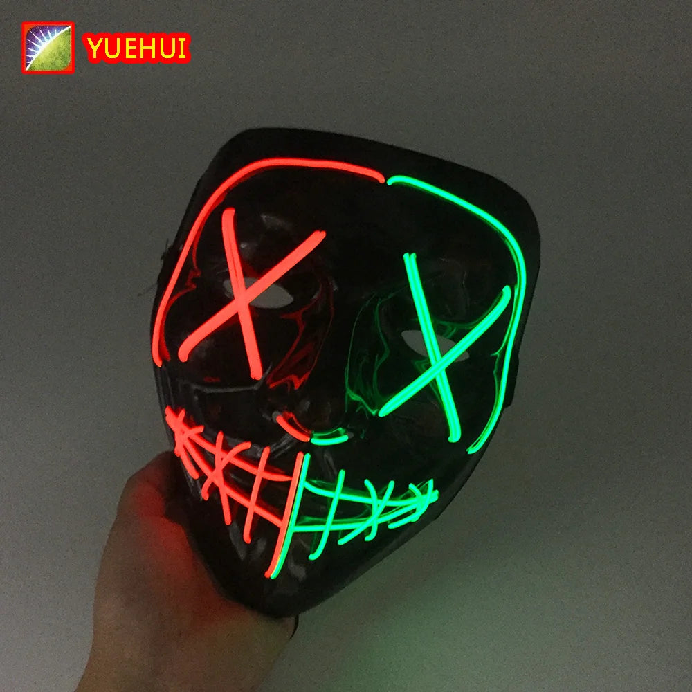 قناع وجه مخيف متوهج للهالوين لاسلكي متعدد الألوان
